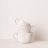 Nosso processo de produção manual é guiado por um rigoroso padrão de design para garantir consistência em forma e função. As sutis variações na tonalidade do esmalte e na textura da matéria são a assinatura do nosso ateliê, conferindo uma identidade única a cada peça, mesmo em larga escala. Todas as peças são de cerâmica de alta resistência, queimadas em alta temperatura, e podem ser usadas com segurança no micro-ondas e lava-louças.